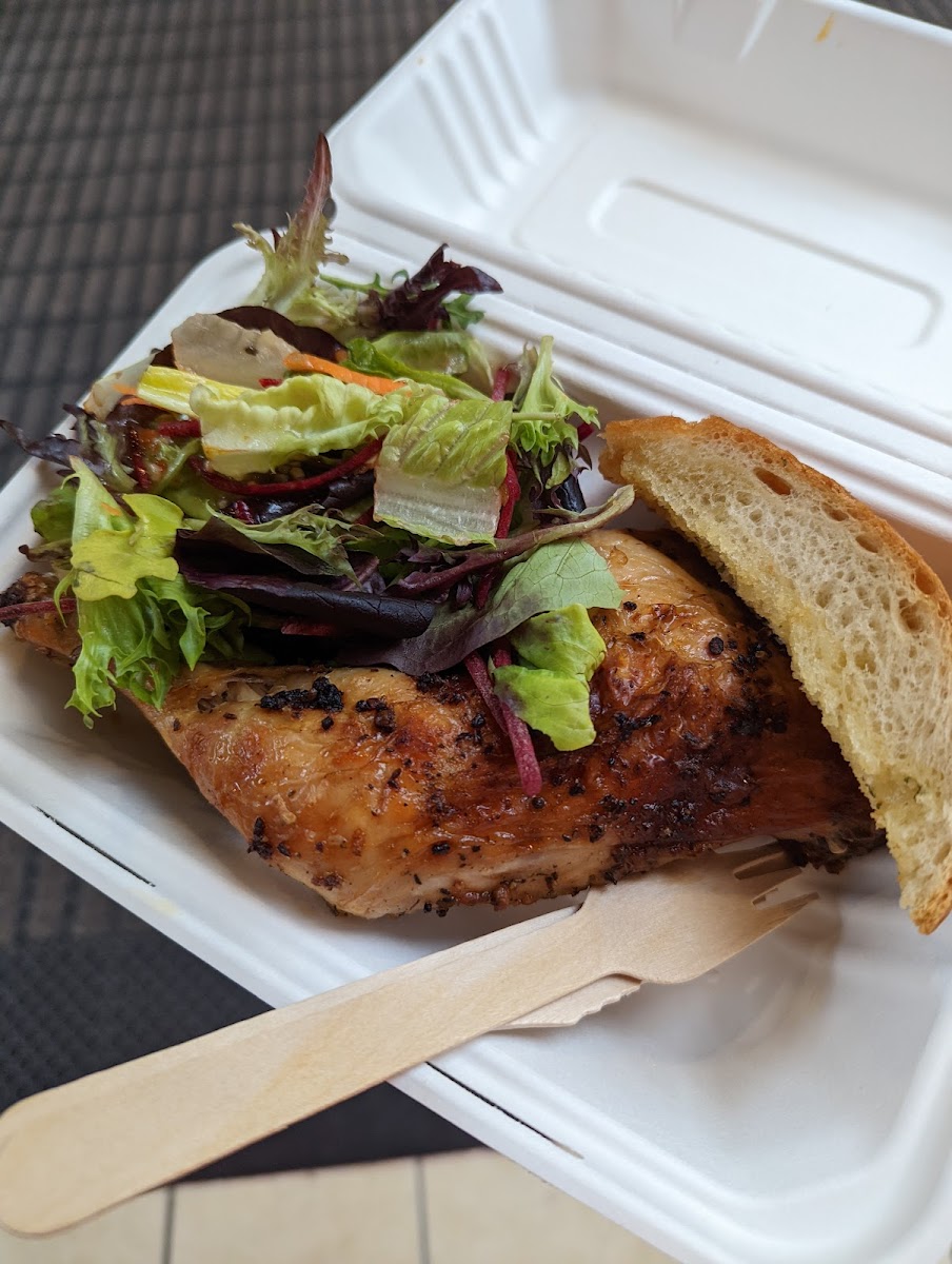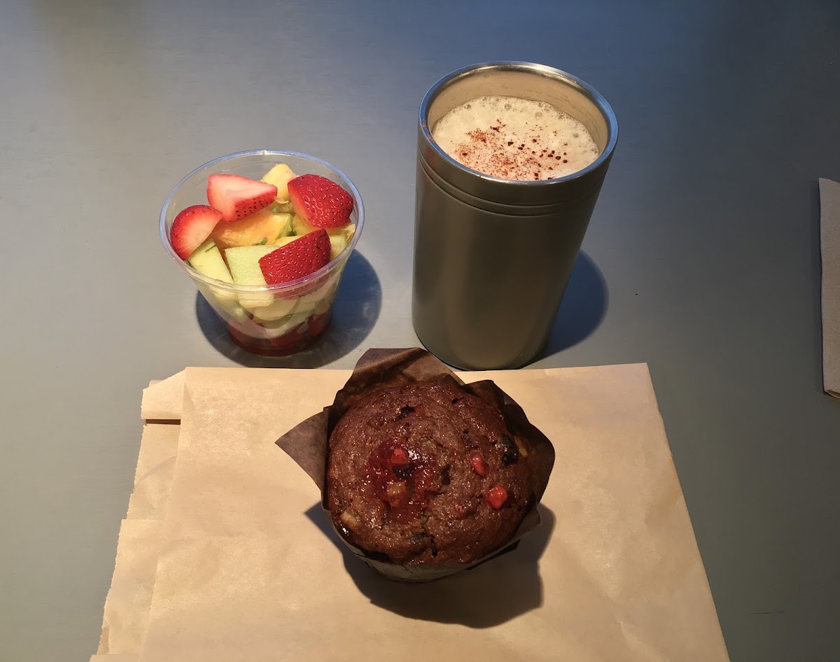 I came here to check out their food options but left with only an iced Americano. Great selection of food and baked goods. I personally wouldn't get more than the rotisserie chicken and chickpea salad but it was near the end of the day. I was a bit surprised that they charged a $.025 cent cup fee when Vancouver abolished that motion a couple of years ago. I really liked that they provided the option of sugar free vanilla or regular vanilla syrup for free off to the side by the lids!